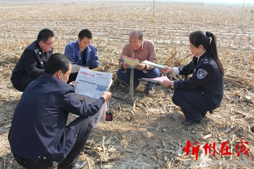 怎樣把《中華人民共和國大氣污染防治法》和《五臺(tái)縣人民政府嚴(yán)防森林火災(zāi)的通告》宣傳到人?五臺(tái)縣環(huán)境保護(hù)局、環(huán)境監(jiān)察大隊(duì)分組劃片,組織環(huán)保人員深入到田間地頭,面對面讀報(bào)給農(nóng)民聽,手遞手散傳單讓農(nóng)民看,為農(nóng)民解釋燒秸稈、燒地堰、燒荒等野外違規(guī)用火行為的危害。臺(tái)城鎮(zhèn)西關(guān)村66歲的農(nóng)民張存在就高興地對縣環(huán)境監(jiān)察人員說:“你們這樣解釋,咱懂,“地頭環(huán)保”咱農(nóng)民也記得牢,我家4畝地的秸稈保證不燒一根,咱漚糞去,多打糧,又不污染。”圖為地頭宣傳環(huán)境保護(hù),增強(qiáng)農(nóng)民環(huán)保意識。(金俊賢 攝)