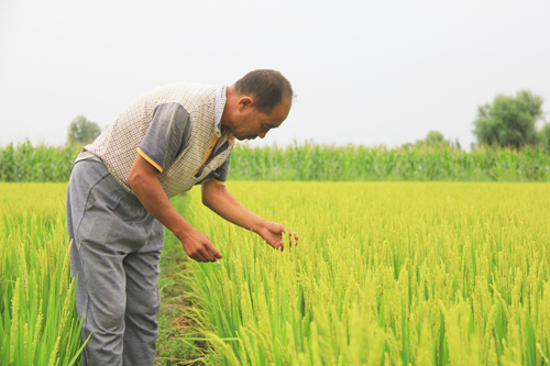 8月13日,原平市大庫狄村民王財(cái)旺正在稻田里查看長(zhǎng)勢(shì)。山西省原平市大庫狄村依傍滹沱河不缺水的優(yōu)勢(shì),發(fā)展水稻特色種植,生產(chǎn)的優(yōu)質(zhì)大米成為品牌,商家客戶上門收購(gòu),富了村民。預(yù)計(jì)今年畝產(chǎn)可達(dá)到千斤。(吉建平 攝)