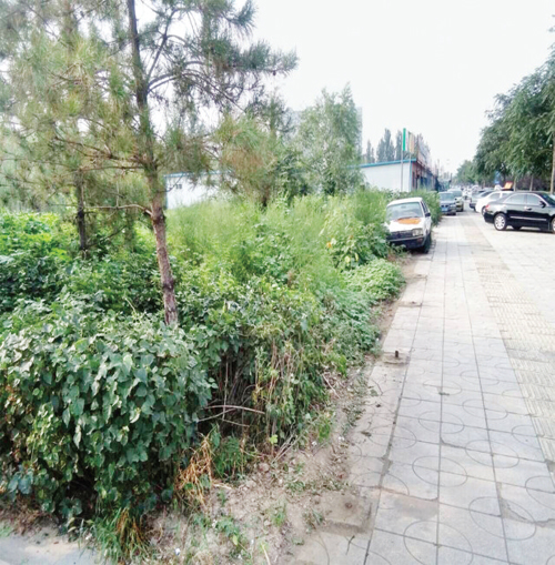 圖為新建北路一側(cè)長滿了野草