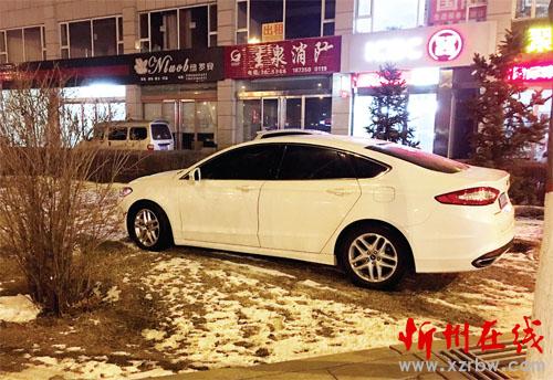 12月15日,記者途經(jīng)市區(qū)團結(jié)西街和建設(shè)北路交叉路口,在東南角看到一輛白色轎車停在路邊的綠化帶上,碾壓草地,讓人心疼。