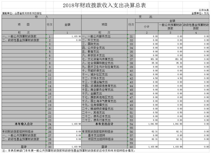 4、2018年財政撥款收入支出決算總表