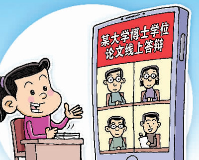 “線上答辯前,要調(diào)整好狀態(tài)、調(diào)試好設(shè)備,確保答辯過(guò)程的順暢?!薄巴ㄟ^(guò)屏幕答辯,體會(huì)到了數(shù)字化時(shí)代網(wǎng)絡(luò)的便捷?!睘榻鉀Q防疫期間畢業(yè)生返校難的問(wèn)題,許多高校推出“云答辯”。