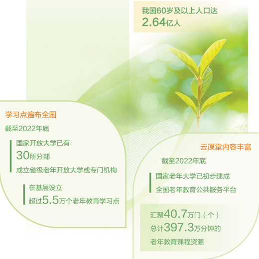 課堂上,聆聽中國工程院院士張伯禮講授《中醫(yī)藥助力老年健康》;教室里,學(xué)習(xí)插花藝術(shù)、詩歌朗誦、健康養(yǎng)生等豐富課程;平臺(tái)上,全國老年教育公共服務(wù)在線資源觸手可及……