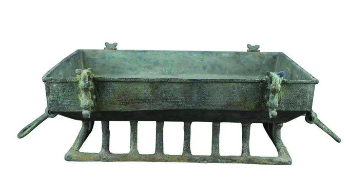 到商周時(shí)期,隨著生產(chǎn)力的進(jìn)步和生產(chǎn)資料的豐富,燒烤的方法也開始升級(jí),烤肉有了專門的稱法“炙”,《禮記》記載:“炙,貫之火上也。”也就是把肉串起來放在火上燒。不過那時(shí)候的燒烤是貴族專供,也是祭祀用品,比如在戰(zhàn)國早期的曾侯乙墓中,曾出土過一件燒烤器,由上盤下爐組成,爐作淺盤形,敞口平底,下有三足,出土?xí)r爐內(nèi)尚有十幾塊未燒過的木炭,曾侯乙的日常菜譜中多半也有烤肉這么一道菜。