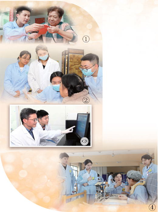 圖④:長沙民政職業(yè)技術(shù)學(xué)院智慧健康養(yǎng)老教師團(tuán)隊成員、主管護(hù)師謝海艷(右三)在實訓(xùn)室給學(xué)生講授老年人生活照護(hù)技術(shù)。人民日報 記者 王云娜攝