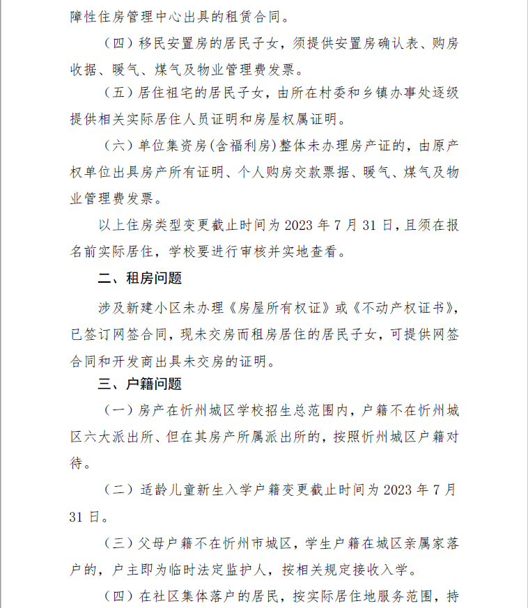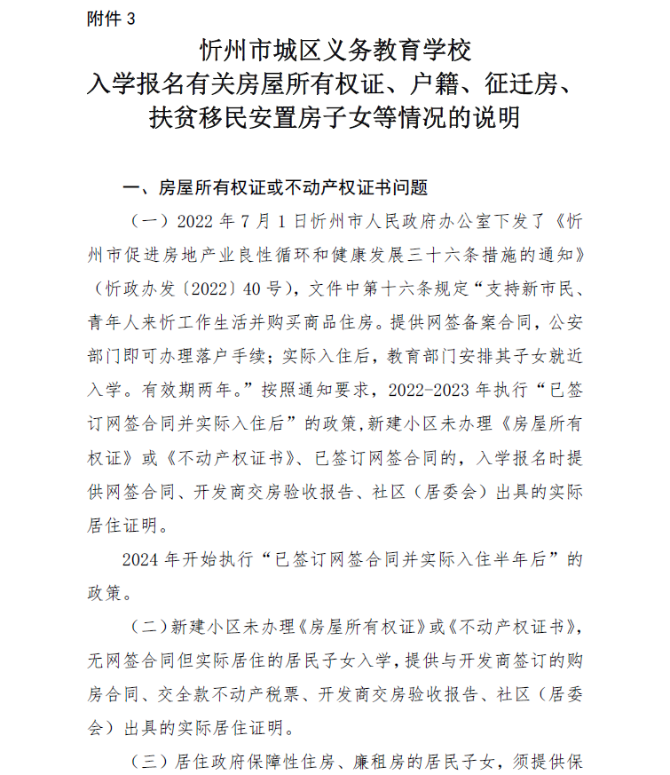 附:忻州市城區(qū)義務(wù)教育學(xué)校入學(xué)報(bào)名有關(guān)房屋所有權(quán)證、戶籍、征遷房、扶貧移民安置房子女等情況的說明