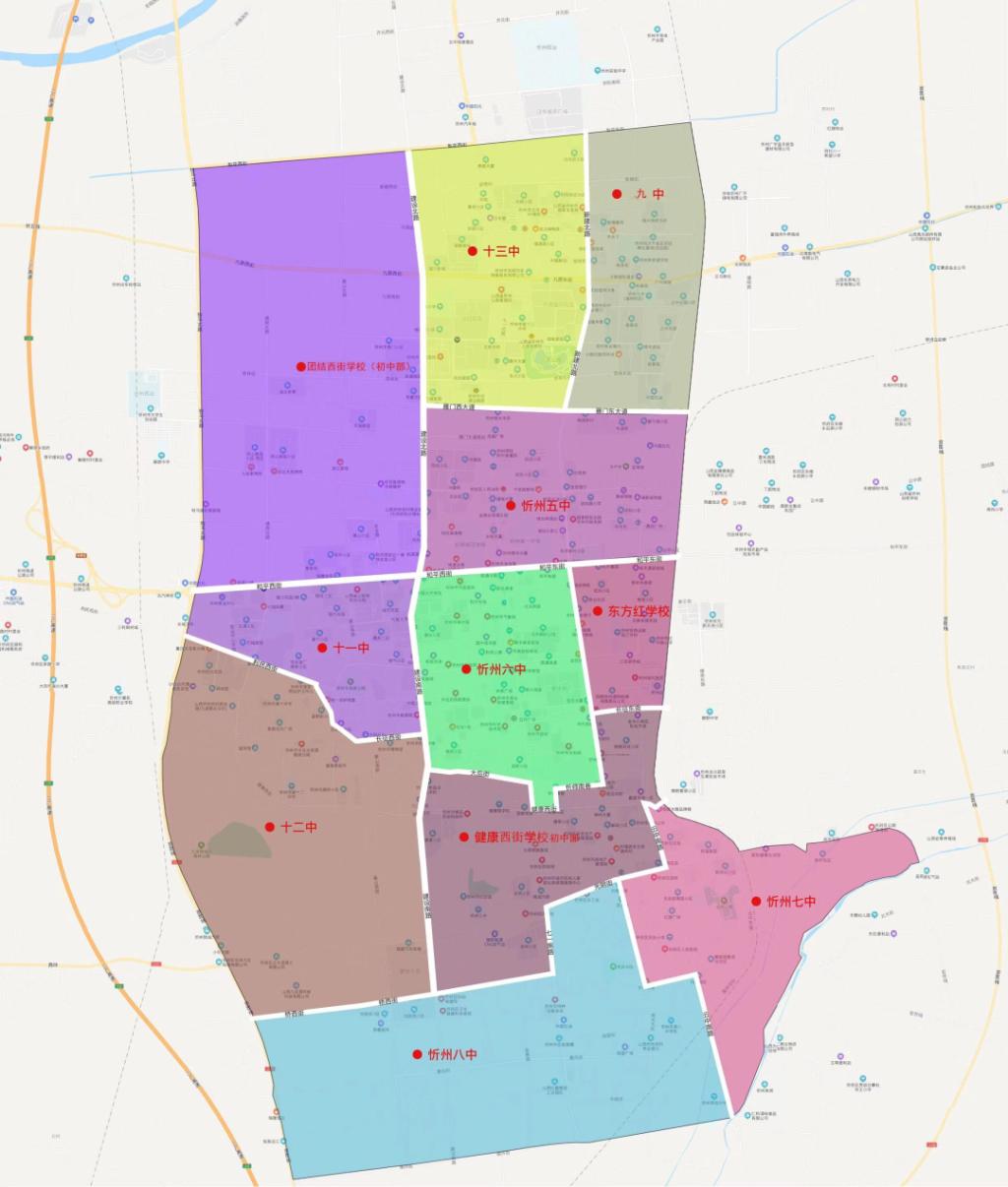 忻州市城區(qū)初中學(xué)校服務(wù)范圍圖