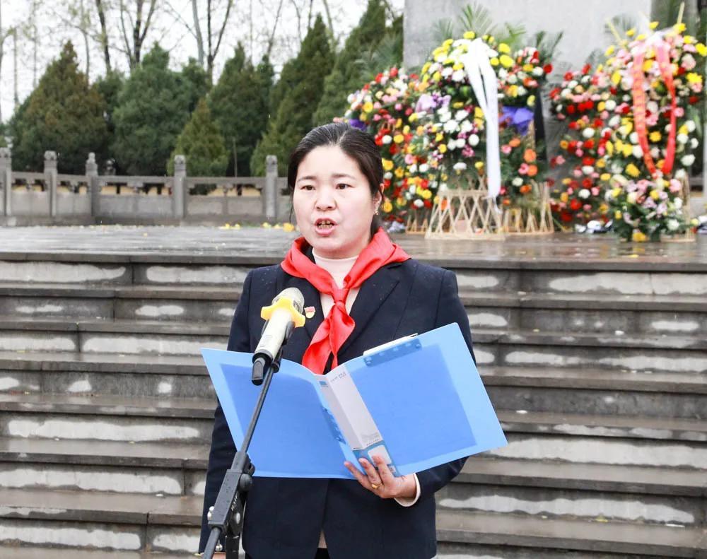 在祭奠活動中,同學們跟隨盧俊芬老師一道學習了趙正午烈士的革命故事,為烈士陵園的先烈們敬獻花籃、默哀,并細致的擦拭了每座烈士墓碑,以此表達對先烈們的無限哀思。