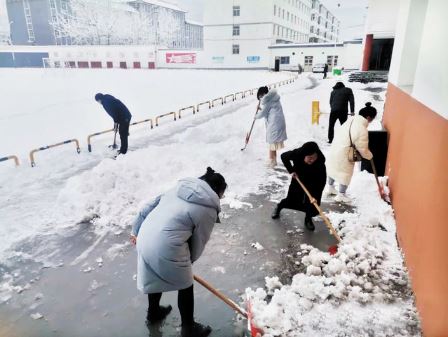 岢嵐三中教師清除校園內(nèi)的積雪,喜迎春季開學(xué)。田沁梅攝
