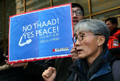 韓國(guó)民眾集會(huì)反對(duì)部署“薩德”系統(tǒng) 新華社發(fā)