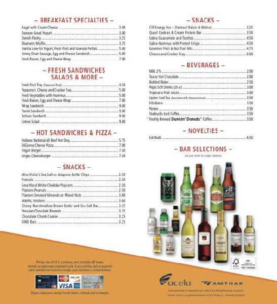 不過(guò)Acela上的食品價(jià)格倒是與一般美國(guó)飯館里的差不多。比如,一個(gè)漢堡大約六七美元。