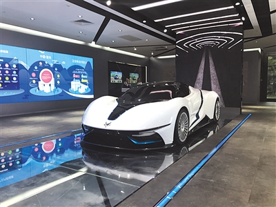 北汽新能源展廳內展示的旗下首款純電動超級跑車ARCFOX-7。