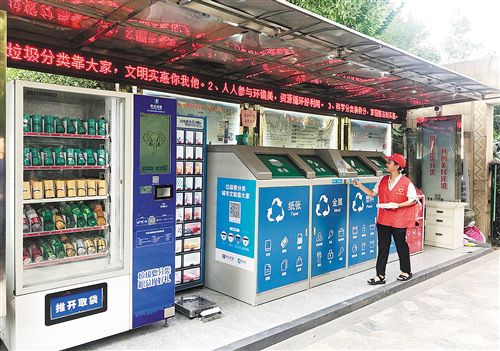 記者采訪發(fā)現(xiàn),浙江省杭州市余杭區(qū)金帝海珀華庭小區(qū)早早引入了浙江聯(lián)運(yùn)環(huán)境工程股份有限公司研發(fā)生產(chǎn)的智能化垃圾箱,居民用積分卡掃碼分類投放垃圾還能賺取積分兌換禮品。