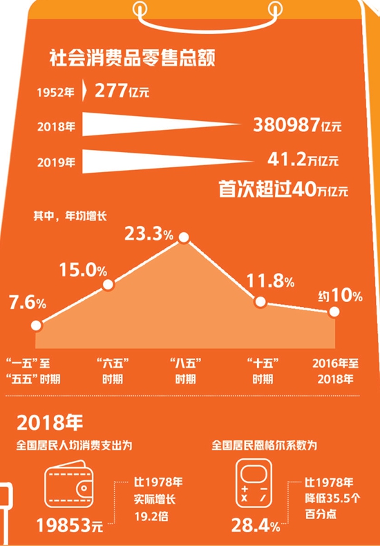 其次,供給側結構性改革降低各種制度成本,增強了微觀主體活力,創(chuàng)造了消費需求躍升的新動力。根據(jù)國家統(tǒng)計局測算,2019年創(chuàng)新驅動指數(shù)為201.4,比上年增長15.6%。其中,全國研究與試驗發(fā)展(R&D)經(jīng)費支出與GDP之比為2.19%,比上年提高0.05個百分點。企業(yè)愿意為創(chuàng)新投入,舍得為創(chuàng)新投入,創(chuàng)造更多新產(chǎn)品、新服務、新業(yè)態(tài)和新模式,創(chuàng)造新的消費需求,改善消費體驗。