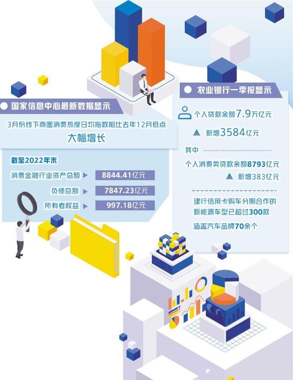 一季度以來,我國消費復蘇按下“快進鍵”,消費信貸投放和惠民力度相較去年不斷加大。農(nóng)業(yè)銀行今年一季報顯示,擴投資促消費力度持續(xù)加大。在促消費方面,個人貸款余額7.9萬億元,新增3584億元。其中,個人消費類貸款余額8793億元,新增383億元。此外,郵儲銀行在今年5月份開展“讓美好發(fā)生”活動,推出個人額度類消費貸款系列產(chǎn)品“郵享貸”,首次通過郵儲銀行APP完成“郵享貸”首筆支用1萬元以上的用戶,有機會獲得美團外賣代金券等禮品。