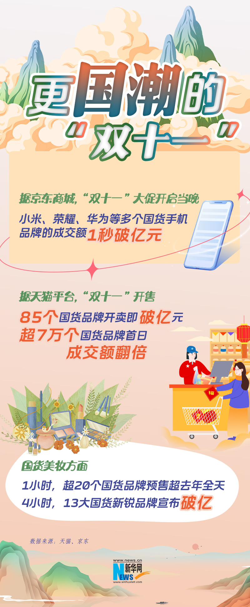 公開數(shù)據(jù)顯示,10月23日京東“雙十一”開啟當(dāng)晚,小米、榮耀、華為等多個(gè)國(guó)貨手機(jī)品牌的成交額1秒破億元;10月31日晚天貓“雙十一”正式開售,85個(gè)國(guó)貨品牌開賣即破億元,超7萬個(gè)國(guó)貨品牌首日成交額翻倍。