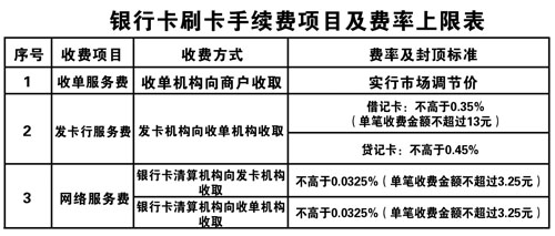 其中,發(fā)卡機(jī)構(gòu)收取的發(fā)卡行服務(wù)費(fèi)將改為不區(qū)分商戶類別,實(shí)行政府指導(dǎo)價、上限管理,并對借記卡、貸記卡差別計(jì)費(fèi)。發(fā)卡行服務(wù)費(fèi)費(fèi)率水平降低為借記卡交易不超過交易金額的0.35%,貸記卡交易不超過0.45%。借記卡交易單筆收費(fèi)金額不超過13元,貸記卡交易不實(shí)行單筆收費(fèi)封頂控制。