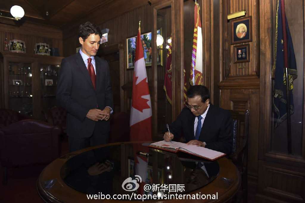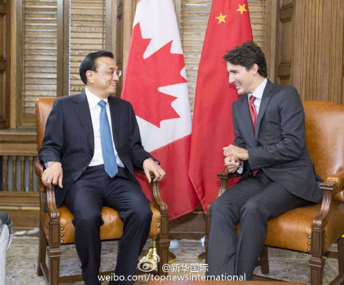 新華網(wǎng)北京9月23日電 當(dāng)?shù)貢r(shí)間22日,李克強(qiáng)總理與加拿大總理特魯多舉行會(huì)談,確認(rèn)正式啟動(dòng)中加總理年度對(duì)話機(jī)制。會(huì)談中,兩國總理就中加關(guān)系和共同關(guān)心的地區(qū)國際問題進(jìn)行了廣泛深入的交談。這是李克強(qiáng)和特魯多在不到一個(gè)月時(shí)間里第二次會(huì)晤。特魯多本月初剛剛訪華。(據(jù)新華社“新華國際”微博報(bào)道)