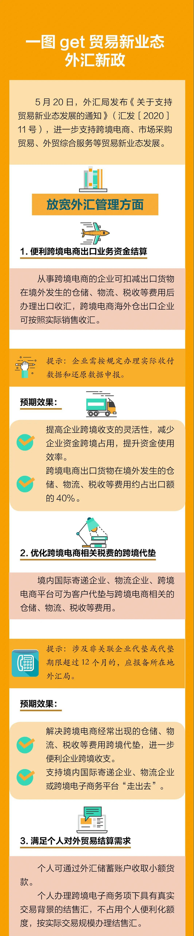 人民網(wǎng)北京5月21日電(記者 杜燕飛)為更好支持貿(mào)易新業(yè)態(tài)發(fā)展,促進(jìn)外貿(mào)提質(zhì)增效,扎實做好“六穩(wěn)”工作,全面落實“六?!比蝿?wù),日前,國家外匯管理局發(fā)布《國家外匯管理局關(guān)于支持貿(mào)易新業(yè)態(tài)發(fā)展的通知》(以下簡稱《通知》),便利相關(guān)外匯業(yè)務(wù)辦理。《通知》自發(fā)布之日起實施。