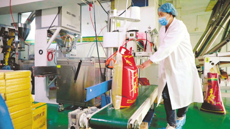 “山花爛漫”小米加工車間。 烈日炎炎,興縣的雜糧作物進入了拔節(jié)抽穗、孕育果實的關(guān)鍵期,田地里的谷子、高粱、苦蕎、黍子、豇豆、大明綠豆……在陽光的沐浴下,孕育著果實。 興縣,平均海拔1002米,氣候干燥涼爽,無霜期短,日照充足,晝夜溫差較大。獨特的自然地理條件,使得這里自古以來就形成了種植雜糧的農(nóng)業(yè)傳統(tǒng)。據(jù)統(tǒng)計,目前興縣出產(chǎn)的雜糧品種已多達16種。 立足自身條件,聚焦“特”“優(yōu)”戰(zhàn)略。近年來,興縣明確提出了打造“中國雜糧之鄉(xiāng)”目標,把發(fā)展雜糧產(chǎn)業(yè)作為鞏固脫貧攻堅成果和全面推進鄉(xiāng)村振興的支柱產(chǎn)業(yè)。2022年興縣被命名為“山西雜糧之鄉(xiāng)”“雜糧美食之鄉(xiāng)”,全縣雜糧種植面積突破40萬畝,雜糧產(chǎn)業(yè)鏈產(chǎn)值達到10.24億元,占農(nóng)民種糧收入的83%,占農(nóng)民人均可支配純收入的55%,輻射帶動35296戶10萬多脫貧人口增收致富。 龍頭引領強基礎 最近,興縣趙家坪鄉(xiāng)佐子坪村的村民趙艾喜每天都要到田地里察看莊稼的長勢。趙艾喜家今年種植了5畝多谷子,是老兩口最主要的收入來源。“去年,我們家的谷子賣了差不多3萬元,全部是訂單收購,今年希望能再多收點?!?/p> 趙艾喜所說的訂單收購,就是興縣近年來大力實施的“龍頭企業(yè)+合作社+農(nóng)戶”的利益聯(lián)結(jié)機制?!拔覀冞@里的小米色澤金黃、口感柔滑,富含鋅、硒、鐵等多種元素,是上佳的營養(yǎng)食品。”興縣本土農(nóng)業(yè)專家趙玉平介紹。盡管當?shù)氐男∶灼焚|(zhì)很好,但過去村民們的糧食都是自產(chǎn)自銷,銷路不暢,價格還被壓得很低,大家的種糧積極性不高,許多村民選擇外出務工。近年來,興縣認真落實中央一號文件精神,鼓勵龍頭企業(yè)和農(nóng)民簽訂訂單,實行優(yōu)質(zhì)優(yōu)價?!艾F(xiàn)在糧食不僅能賣得了,還能賣得好,大家種糧的收入提高了,種地的積極性也在不斷提高。”趙玉平笑著道出了近些年的變化。 位于蔡家會鎮(zhèn)的興縣山花爛漫農(nóng)業(yè)綜合開發(fā)有限公司,日精加工50噸谷子成套設備生產(chǎn)流水線上,經(jīng)過初篩、精選、加工、包裝后的袋裝小米經(jīng)過傳輸帶被送往庫房,等待裝車發(fā)貨?!拔覀兊漠a(chǎn)品涵蓋有機小米、綠豆、莜面、豇豆面、亞麻籽油等,年加工雜糧、油料可達4萬多噸?!惫径麻L賀虎平介紹,自2005年“山花爛漫”商標注冊以來,已與興縣50多個自然村,916戶農(nóng)戶,簽訂訂單農(nóng)業(yè)近3萬畝,其中脫貧戶430多戶,戶均收入達到1.5萬余元/年。 而山西清泉醋業(yè)有限公司的生產(chǎn)車間里則彌漫著一股濃烈的醋香味。這是一家以雜糧為原料,生產(chǎn)功能性食醋的食品企業(yè)。一瓶瓶自動灌裝好的食醋被機械手碼垛機合攏成箱后,“走下”生產(chǎn)線。公司董事長白清泉介紹,為保障原料供應,公司通過“公司+基地+農(nóng)戶”的模式,在康寧鎮(zhèn)和孟家坪鄉(xiāng)建成了5000多畝高粱種植基地,所有高粱都實行保護價收購,帶動1000多農(nóng)戶種植高粱,戶均增收6000元/年。 據(jù)興縣農(nóng)業(yè)農(nóng)村局相關(guān)負責人介紹,為了將雜糧產(chǎn)業(yè)打造成鄉(xiāng)村振興的優(yōu)勢產(chǎn)業(yè),帶動農(nóng)民增收。近年來,興縣圍繞國家級龍頭企業(yè)上榜、晉興板上市、產(chǎn)值上億、利潤上千萬的“四上”目標,共培育雜糧加工市級以上龍頭企業(yè)7家、專業(yè)合作社33個、種植大戶1600余戶,雜糧產(chǎn)業(yè)鏈產(chǎn)值達到10.24億元,占農(nóng)民種糧收入的83%,占農(nóng)民人均可支配純收入的55%,輻射帶動35296戶10萬多脫貧人口增收致富。 同時,還注冊了“山花爛漫”“晉興紅”“晉綏黃河灣”“晉綏紅土地”“呂糧英雄”“清泉”“臥牛嶺”等多個雜糧產(chǎn)品品牌。目前,興縣山花爛漫農(nóng)業(yè)綜合開發(fā)有限公司、山西清泉醋業(yè)有限公司和興縣晉綏黃河灣農(nóng)業(yè)開發(fā)有限公司加工范圍已覆蓋全縣所有雜糧品種,加工轉(zhuǎn)化率突破50%。 藏糧于技提效益 位于興縣固賢鄉(xiāng)吳城村的中國農(nóng)科院作物科學研究所雜糧選種基地里,高粱、蕎麥、豌豆、紅蕓豆,各個品種和不同系列的試驗田地塊分明,界限清晰?!斑@片試驗田一共有110畝,其中高粱48畝、92個品種,苦蕎和甜蕎52畝、1020個品種,另外10畝是紅蕓豆新品種?!眳浅谴妩h支部書記賈俊宏介紹。“這些試驗的品種,經(jīng)過我們的持續(xù)跟蹤監(jiān)測,生長狀況都非常好,大多是耐旱性強、產(chǎn)量高,適合當?shù)刈匀粭l件的新品種?!敝袊r(nóng)科院作物科學研究所研究員肖永貴說。 立足于將雜糧產(chǎn)業(yè)培育成特優(yōu)產(chǎn)業(yè)和引領鄉(xiāng)村振興支柱產(chǎn)業(yè)的目標,近年來興縣加大了農(nóng)業(yè)基礎性長期性實驗站(點)建設力度,推動農(nóng)業(yè)關(guān)鍵核心技術(shù)攻關(guān)和種業(yè)振興行動。2022年4月,興縣與中國農(nóng)科院作物科學研究所簽約,成立了晉綏雜糧研究院,初步篩選出適宜興縣種植的24個雜糧品種,其中2個谷子品種、2個豆類品種、2個蕎麥品種和5個高粱品種,增產(chǎn)幅度都非常明顯。尤其是谷子、高粱單產(chǎn)分別達到1000斤/畝、1500斤/畝,增幅均突破50%。 同時,緊盯雜糧產(chǎn)業(yè)發(fā)展的各個