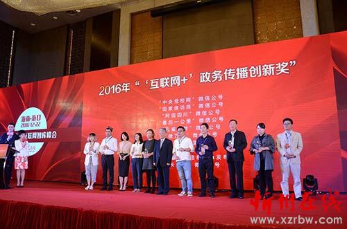 本報(bào)訊 12月22日,首屆全國(guó)互聯(lián)網(wǎng)智庫(kù)峰會(huì)暨第四屆網(wǎng)絡(luò)輿情論壇在海南省??谑新≈卣匍_。中央及各省(市、自治區(qū))宣傳和網(wǎng)信部門領(lǐng)導(dǎo)、國(guó)內(nèi)業(yè)界知名專家、學(xué)者、政務(wù)新媒體代表等200余人齊聚一堂,圍繞“‘十三五’供給側(cè)改革背景下輿論新格局”主題,深入探討互聯(lián)網(wǎng)內(nèi)容建設(shè)與供給、政務(wù)輿情回應(yīng)和引導(dǎo)的新理念、新思路、新格局。會(huì)議期間,舉行了2016年“互聯(lián)網(wǎng)+政務(wù)傳播創(chuàng)新獎(jiǎng)”、“政務(wù)輿情回應(yīng)優(yōu)秀獎(jiǎng)”、“城市新媒體傳播優(yōu)秀獎(jiǎng)”和“全國(guó)政法新媒體建設(shè)優(yōu)秀獎(jiǎng)”頒獎(jiǎng)儀式。忻州隨手拍榮獲2016年全國(guó)“互聯(lián)網(wǎng)+政務(wù)傳播創(chuàng)新獎(jiǎng)”,為十佳之一。