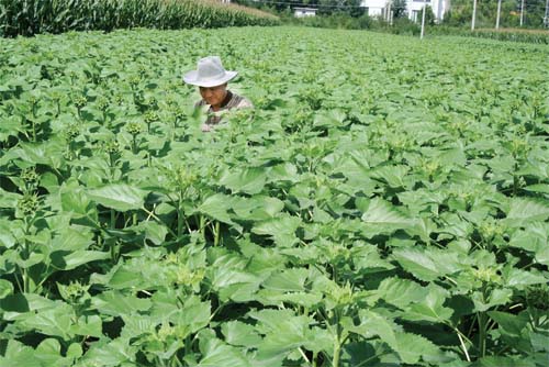近年來(lái),原平市積極引導(dǎo)農(nóng)民大力發(fā)展特色種植業(yè),有效促進(jìn)農(nóng)民增產(chǎn)增收,加快致富奔小康。圖為8 月26 日原平市小河村農(nóng)民正在地里管理長(zhǎng)勢(shì)喜人的墨葵。趙春曉 攝