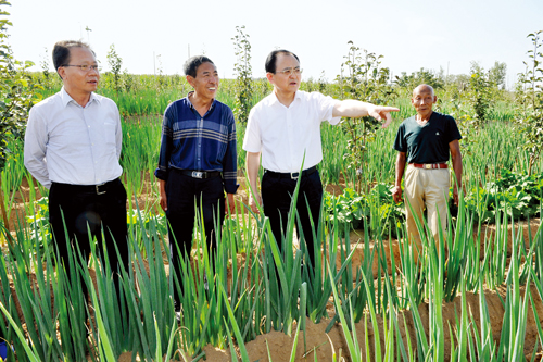 高城鄉(xiāng)高城村多年種植商品辣椒,輻射帶動全區(qū)商品椒種植達10萬余畝。當前正是辣椒收儲加工的高峰期,李俊明實地察看辣椒產業(yè)園區(qū)內的收儲加工情況,了解育苗大棚經營收入,詢問送售辣椒農民的種植收益,詳細了解帶動貧困群眾增收情況。李俊明指出,要持續(xù)深入打造辣椒生產全產業(yè)鏈條,通過規(guī)?;⑵放苹?、標準化以及線上線下同步發(fā)展,建立產業(yè)發(fā)展與貧困群眾的利益聯結機制,積極吸引周邊鄉(xiāng)村貧困群眾參與勞務,帶動貧困群眾脫貧增收。董村鎮(zhèn)在傳統種植項目基礎上,由各村黨支部書記帶頭種植無公害紅薯、菌肥茄子、高油花生、大蔥、大蒜、板藍根等示范田,引導農民調整種植結構。李俊明實地察看了連片種植的百余畝高油花生種植田,詳細詢問實際產出比。他說,農業(yè)供給側結構性改革既要發(fā)揮好市場的調節(jié)作用,也要發(fā)揮政府的引導作用。要學習忻府區(qū)支部書記示范田的有益創(chuàng)新,通過支部書記、村主任等村干部帶頭,讓農民在看得見的收益引導下自覺調整種植結構,把“三基”建設的成果最終體現到帶動農民脫貧增收上。