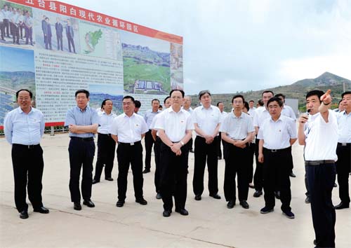 圖為省人大常委會副主任、市委書記李俊明帶領觀摩人員在五臺縣特色農(nóng)業(yè)產(chǎn)業(yè)扶貧陽白現(xiàn)代農(nóng)業(yè)循環(huán)園區(qū)聽取情況介紹。本報記者 劉紀森 攝