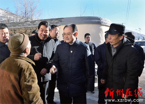 圖為省人大常委會副主任、市委書記李俊明在繁峙縣巖頭鄉(xiāng)茶鋪村向村民了解脫貧情況。本報記者劉紀森攝