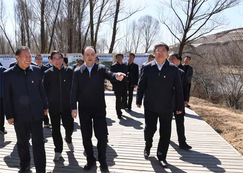 圖為4月1日,省人大常委會副主任、市委書記李俊明在靜樂縣汾河川國家濕地公園調(diào)研。本報記者 劉紀森 攝