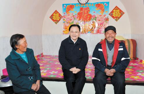 圖為省人大常委會(huì)副主任、市委書記李俊明在偏關(guān)縣新關(guān)鎮(zhèn)高家上石會(huì)村高長后家了解增收脫貧情況。本報(bào)記者 宮愛文攝