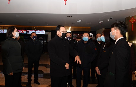 省人大常委會(huì)副主任、市委書記李俊明在開萊橫店影城檢查娛樂場所暫停營業(yè)執(zhí)行情況 本報(bào)記者 劉紀(jì)森 攝