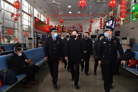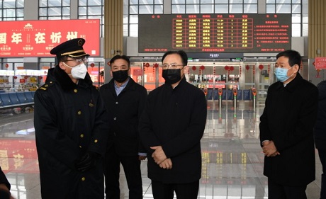 省人大常委會(huì)副主任、市委書記李俊明在火車站檢查督導(dǎo)疫情防控措施準(zhǔn)備情況 本報(bào)記者 劉紀(jì)森 攝