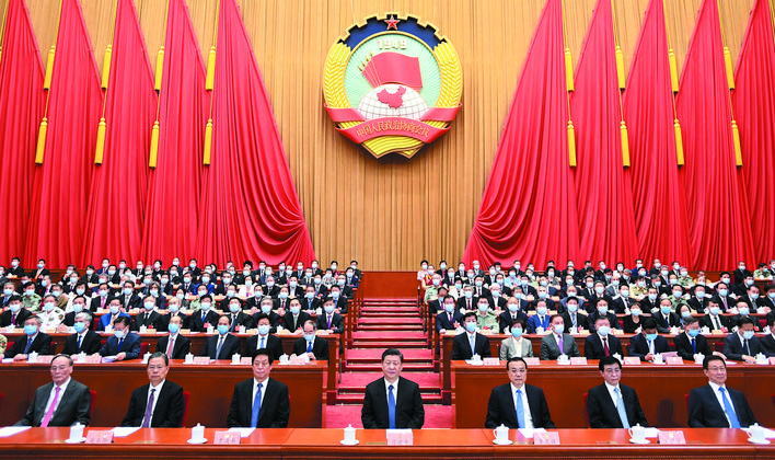 5月27日,中國(guó)人民政治協(xié)商會(huì)議第十三屆全國(guó)委員會(huì)第三次會(huì)議在北京閉幕。這是習(xí)近平、李克強(qiáng)、栗戰(zhàn)書(shū)、王滬寧、趙樂(lè)際、韓正、王岐山等在主席臺(tái)就座。 新華社記者 謝環(huán)馳 攝