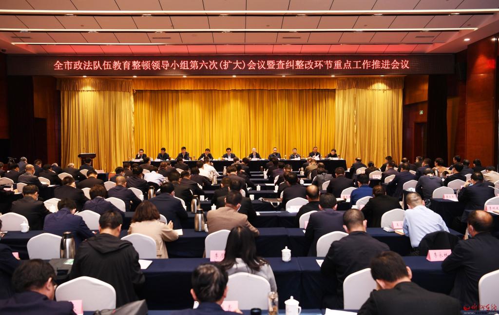 本報(bào)訊 (記者楊峰雷)4月20日,市委召開(kāi)市政法隊(duì)伍教育整頓領(lǐng)導(dǎo)小組第六次(擴(kuò)大)會(huì)議暨查糾整改環(huán)節(jié)重點(diǎn)工作推進(jìn)會(huì)議。省政法隊(duì)伍教育整頓第四駐點(diǎn)指導(dǎo)組組長(zhǎng)賈明建講話。市委書記、市政法隊(duì)伍教育整頓領(lǐng)導(dǎo)小組組長(zhǎng)鄭連生主持并講話。市委副書記、政法委書記、宣傳部長(zhǎng)、市政法隊(duì)伍教育整頓領(lǐng)導(dǎo)小組常務(wù)副組長(zhǎng)郭奔勝安排部署查糾整改環(huán)節(jié)重點(diǎn)工作。省政法隊(duì)伍教育整頓第四駐點(diǎn)指導(dǎo)組副組長(zhǎng)蔚崇通、劉銀祥出席會(huì)議。市委常委、紀(jì)委書記、監(jiān)委主任、市政法隊(duì)伍教育整頓領(lǐng)導(dǎo)小組副組長(zhǎng)劉卓良傳達(dá)省政法隊(duì)伍教育整頓領(lǐng)導(dǎo)小組第三次會(huì)議暨查糾整改環(huán)節(jié)重點(diǎn)工作推進(jìn)會(huì)精神。市領(lǐng)導(dǎo)溫建軍、崔向松、袁小波以及市中級(jí)人民法院院長(zhǎng)劉碩才、市人民檢察院檢察長(zhǎng)周東曙分別發(fā)言并安排相關(guān)工作。