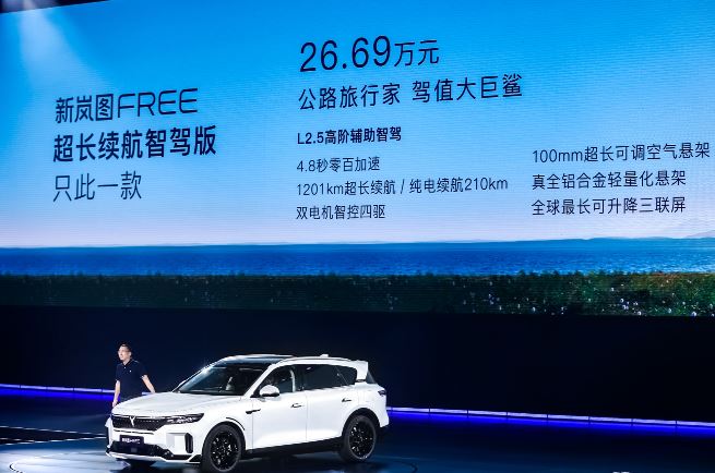8月19日,新嵐圖FREE在2023 VOYAH NIGHT嵐圖用戶之夜正式上市,售價26.69萬元。新嵐圖FREE采用新外觀、新內(nèi)飾、新動總、新智駕,定位“智駕游大五座SUV”,首搭百度Apollo Highway Driving Pro領(lǐng)航輔助智駕;全系標(biāo)配四驅(qū)系統(tǒng)和空氣懸掛;采用1.5T深度米勒循環(huán)增程器,CLTC綜合續(xù)航里程達(dá)到1201km,純電續(xù)航里程210km,是嵐圖FREE車型自上市以來的首次全面煥新升級。