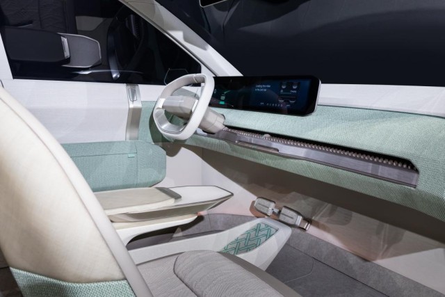 內(nèi)飾方面,起亞EV3概念車內(nèi)飾采用了簡約的設(shè)計風格,可以看到,該車內(nèi)飾并沒有配備多功能按鍵,雙輻式的方向盤搭配大尺寸連屏,以及懸浮式的座椅,更顯未來感。此外,在內(nèi)飾用料上,該車內(nèi)飾采用了大面積的織物包裹,座椅采用環(huán)保材料,座椅設(shè)計符合人體工程學(xué)原理。