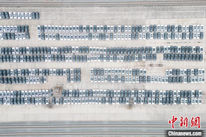 2023年9月,位于重慶江津的川黔鐵路小南埡站內(nèi),等待裝運(yùn)發(fā)往海外的汽車。記者 何蓬磊 攝