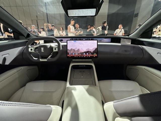 新車內(nèi)部配備“云境環(huán)擁式感應座艙”,采用尺寸達到35.4英寸的4K全景寬屏,兩側(cè)配有流媒體后視鏡顯示區(qū)域,中央部位可顯示多項駕駛信息。另外,該車還配備一塊15.6英寸中控屏幕與造型新穎的多功能方向盤。細節(jié)部分,阿維塔12在座艙內(nèi)部使用大量Nappa真皮材質(zhì)進行包覆,并配備超柔觸感類麂皮精致頂棚,整體極具質(zhì)感。