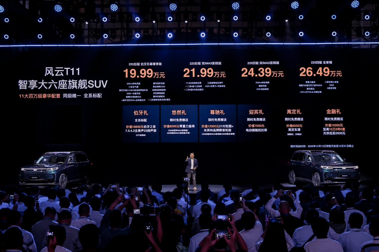 10月13日,以“兌現(xiàn)”為主題的風云T11家庭品鑒日暨預(yù)售發(fā)布會在安徽蕪湖圓滿收官。作為風云品牌煥新后的首款旗艦級SUV,風云T11定位為“智享大六座旗艦SUV”。新車以“頂格對標”為理念,憑借“超大更好”四大核心價值、三大沉浸式場景與11大全系標配,兌現(xiàn)用戶對品質(zhì)生活的全維期待。