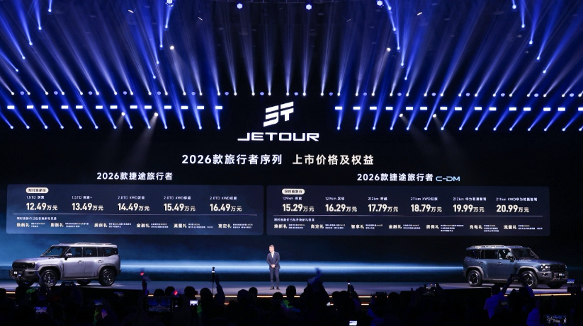 此次活動上2026款捷途旅行者和捷途旅行者C-DM正式上市。2026款捷途旅行者,限時煥新價12.49萬—16.49萬元,并提供6重購車好禮,捷途旅行者C-DM,限時煥新價15.29萬—20.99萬元,提供7重購車好禮。