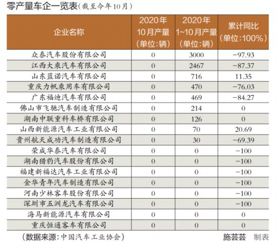 正如蔡榮華所言,我國(guó)汽車產(chǎn)銷量占全球30%左右,企業(yè)競(jìng)爭(zhēng)日趨激烈,但是盲目投資、產(chǎn)能利用率比較低的問(wèn)題尚未得到有效解決。《中國(guó)汽車工業(yè)產(chǎn)銷快訊》(2020年第11期)數(shù)據(jù)顯示,在總共被統(tǒng)計(jì)的88家汽車企業(yè)中,今年10月汽車產(chǎn)量為零的汽車企業(yè)竟然多達(dá)17家(事實(shí)上,這一數(shù)據(jù)在8月為16家),今年前10個(gè)月產(chǎn)量低于500輛的共有25家,其中,有8家生產(chǎn)企業(yè)今年未生產(chǎn)過(guò)1輛汽車,占比接近一成。