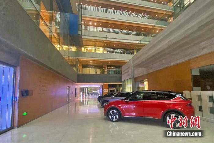 圖為北汽新能源(中國(guó)藍(lán)谷)主樓內(nèi)擺放的極狐汽車 中新財(cái)經(jīng) 葛成 攝