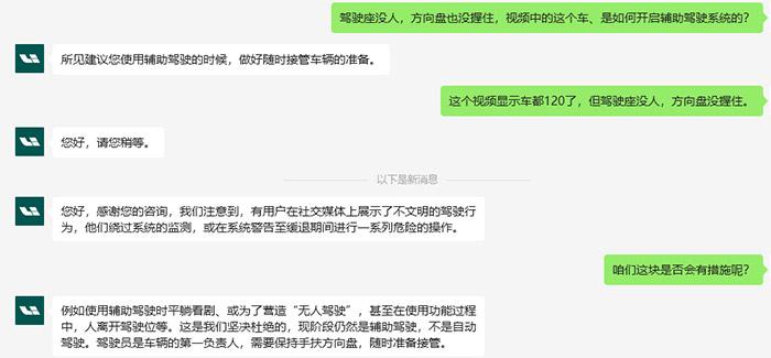 對此,理想汽車客服客服表示,例如使用輔助駕駛時平躺看劇、或為了營造“無人駕駛”,甚至在使用功能過程中,人離開駕駛位等,這是我們堅決杜絕的,現(xiàn)階段仍然是輔助駕駛,不是自動駕駛。駕駛員是車輛的第一負責人,需要保持手扶方向盤,隨時準備接管。