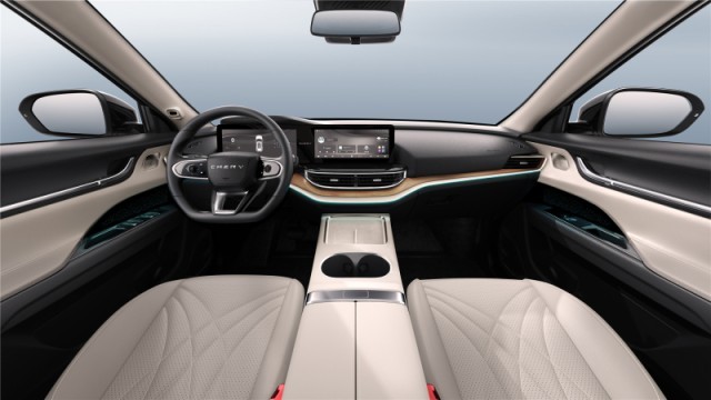奇瑞eQ7車內(nèi)T型布局設(shè)計簡約且富有科技感,貫穿中控臺的線條具有一定層次感,并會有氛圍燈進(jìn)行點綴。另外,eQ7在中央扶手箱前方有兩個水杯槽,預(yù)計配備了雙手機(jī)無線充電面板,下方還有容量不錯的儲物槽。
