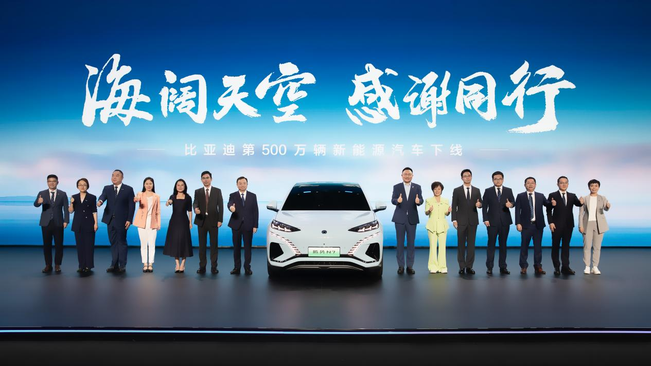 央廣網(wǎng)北京8月10日消息 8月9日,比亞迪第500萬輛新能源汽車正式下線,成為全球首家達成這一里程碑的車企。這不僅是比亞迪的全新里程碑,更是中國品牌向好向上發(fā)展的見證。發(fā)布會現(xiàn)場,比亞迪股份有限公司董事長兼總裁王傳福對500萬新能源用戶、政府部門、媒體朋友、上下游合作伙伴、同行友商及60多萬員工表達衷心的感謝。
