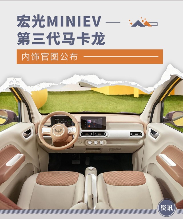 網(wǎng)通社快訊 宏光MINIEV第三代馬卡龍內(nèi)飾官圖公布。新車將SMILEY美學(xué)繼續(xù)運(yùn)用在內(nèi)飾設(shè)計(jì)上,并提供以悅心為設(shè)計(jì)主旨的牛奶太妃、布朗尼黑兩款內(nèi)飾配色可選。與此同時(shí),該車還在空間表現(xiàn)、座椅材質(zhì)、座艙配置等多個(gè)方面也進(jìn)行升級(jí),配備8英寸懸浮觸控娛樂中控屏和人體工學(xué)座椅等配置。