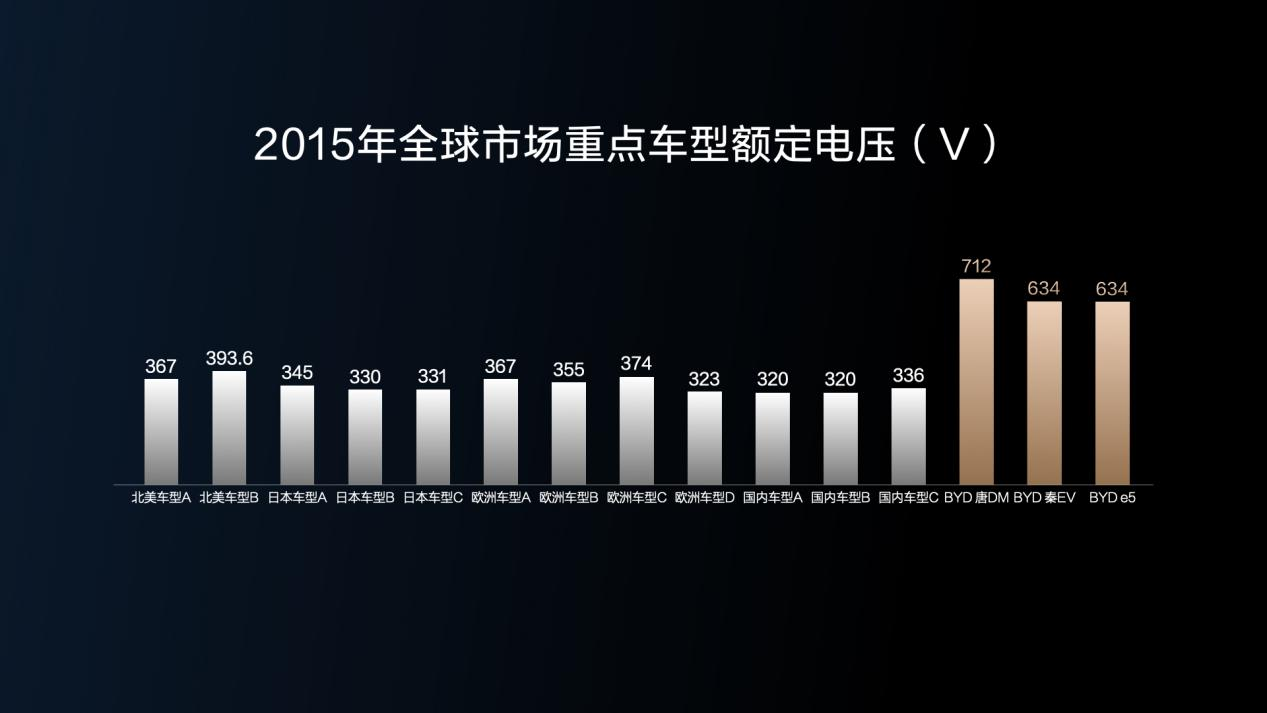 在新能源汽車普及初期,為了突破動力、續(xù)航、充電等方面的技術上限,給用戶創(chuàng)造更極致的電動車體驗,電動車高壓化的技術突破勢在必行。比亞迪率先在2015年實現(xiàn)突破,全球首創(chuàng)乘用車800V高電壓平臺,搭載在秦EV(2015款)、唐DM(2015款)等車型上。該技術可實現(xiàn)百公里加速快至4秒級,純電續(xù)航里程可達450km、快充功率提升至60kW,全方面升維用戶體驗。比亞迪800V高電壓平臺超前行業(yè)2-3代,當時,市面上的乘用車都是低電壓,只有比亞迪是高電壓。時至今日,行業(yè)競相進入800V高電壓平臺賽道。