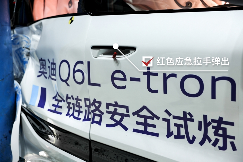 結(jié)果顯示,一汽奧迪Q6L e-tron車身結(jié)構(gòu)完整,A、B、C、D柱均未發(fā)生結(jié)構(gòu)性失效,兩次擠壓下乘員艙依然保持足夠的生存空間。安全帶正常預(yù)緊點(diǎn)爆,側(cè)氣囊、側(cè)氣簾及中央氣囊正常展開,全車假人傷害值均處于優(yōu)秀水平。電池組在遭遇“夾心式?jīng)_擊”后幾乎無變形、無位移,經(jīng)受住幾何形變與短路風(fēng)險(xiǎn)雙重考驗(yàn),未發(fā)生冒煙、起火、爆炸或電解液泄漏。高壓系統(tǒng)在毫秒級內(nèi)完成高壓斷電,有效避免短路造成熱失控風(fēng)險(xiǎn)。通過科學(xué)的走線,有效的結(jié)構(gòu)保護(hù),以及冗余的功能設(shè)計(jì),保障極限場景下低壓電正常工作。半隱藏式車門把手的紅色應(yīng)急拉手正常彈出,前排車門可正常打開,電動座椅可調(diào)節(jié);車窗自動下降,保障車內(nèi)空氣流動。碰撞后雙閃及時(shí)開啟,E-CALL及時(shí)啟動并接通人工客服。從堅(jiān)若磐石的乘員艙結(jié)構(gòu),到周全可靠的碰撞后救援機(jī)制等,每一個(gè)安全細(xì)節(jié)都交出了高分答卷。