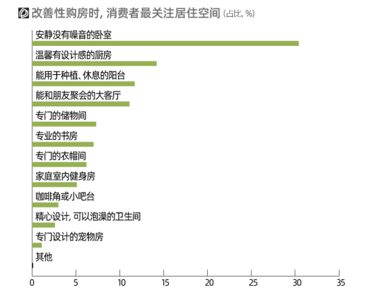 《報告》發(fā)現:消費者在住房消費領域需求變化呈現出“在居住空間方面,追求個性化、審美化、輕奢化等”;“在居住生活品質方面,需求從房屋本身向社區(qū)配套、鄰里關系等外部延展”等特點。